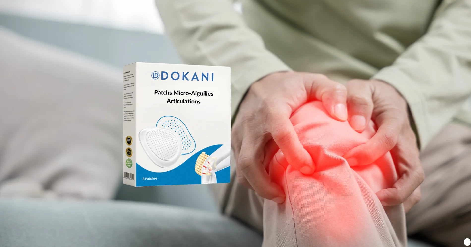 Le patch peut être appliqué sur toutes les articulations : genoux, hanches, coudes, épaules, poignets et même le dos.